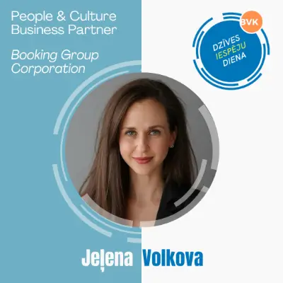 Jeļenai Volkovai ir vairāk nekā 5 gadu pieredze cilvēkresursu vadībā, organizāciju attīstībā un kultūras transformācijā starptautiskā vidē. Ikdienā strādā ar talantu piesaisti, darbinieku iesaisti, līderības attīstību un darba tirgus tendenču analīzi. Uzņēmums Booking Group Corporation SIA ir starptautiska digitāla ceļojumu tehnoloģiju kompānija ar galveno zīmolu EconomyBookings.com, kas darbojas vairāk nekā 150 valstīs. Uzņēmums attīsta tehnoloģiskus risinājumus mobilitātes un ceļojumu jomā, apvienojot datu analītiku, automatizāciju un uz klientu vērstu pieeju.